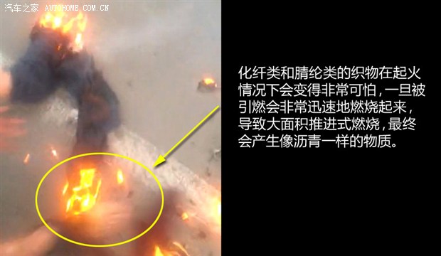 這里要提醒一點(diǎn)的是,化纖類和腈綸類的織物在起火的情況下會(huì)變得非常可怕,比如襪子,特別是絲襪這種東西,一旦被引燃會(huì)非常迅速地燃燒起來,導(dǎo)致大面積推進(jìn)式燃燒,最終還會(huì)產(chǎn)生類似瀝青一樣的物質(zhì),非常黏,這樣用手很難摳掉。從視頻中就可以看到,傷者脫掉鞋的同時(shí),襪子基本已經(jīng)燒沒了。