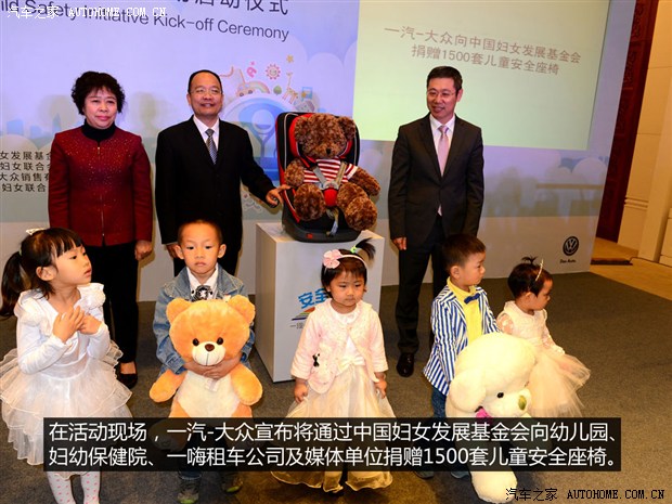 在啟動(dòng)儀式上,一汽-大眾宣布將通過中國婦女發(fā)展基金會向幼兒園、婦幼保健院、一嗨租車公司及媒體單位捐贈(zèng)1500套兒童安全座椅,用于兒童安全座椅的傳播,提升公眾意識和使用率。(文/汽車之家 汪淼)