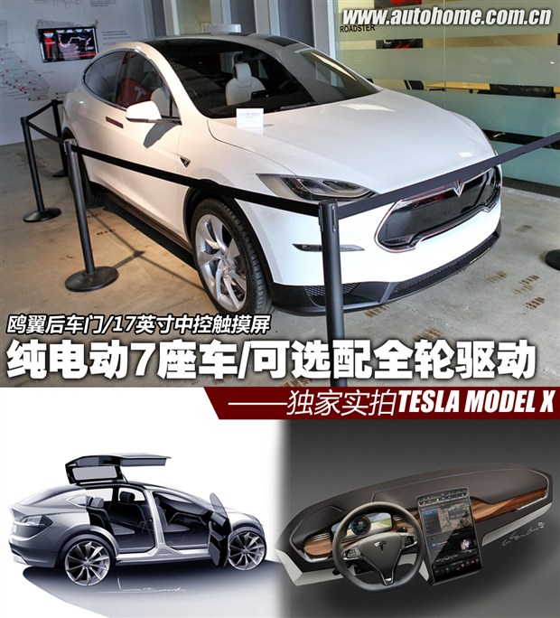 [汽車之家 新車圖解] 當(dāng)國內(nèi)純電動(dòng)汽車的研發(fā)工作正在大張旗鼓地進(jìn)行中時(shí),遠(yuǎn)在大洋彼岸的TESLA在2008年就已將電動(dòng)汽車轉(zhuǎn)變?yōu)榫哂袑?shí)際使用意義的量產(chǎn)車型。而在2014年初,TESLA的第三款車型Model X即將與公眾見面,而今天,我們在美國的TESLA經(jīng)銷商處就已經(jīng)見到了這款全新的Model X。