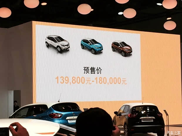 [汽車之家 新車首發(fā)] 在2015上海車展上,雷諾正式公布了小型SUV Captur的預售價與中文名。該車中文名為卡繽,預售價13.98-18萬元,將會進口三個版本。